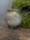 Authentiek stenen tuimelkruikje op metalen statief. Pootjes statief staan 13,5cm uit elkaar. Kan ook zonder statief neer worden gezet. Het gaat om een oud kruikje hierdoor is het geen effen materiaal! Hoogte is incl. statief. Afmeting: H15,5xD12