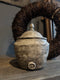 Authentiek stenen tuimelkruikje op metalen statief. Pootjes statief staan 13,5cm uit elkaar. Kan ook zonder statief neer worden gezet. Het gaat om een oud kruikje hierdoor is het geen effen materiaal! Hoogte is incl. statief. Afmeting: H19xD15